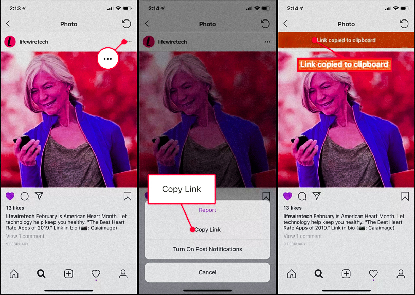 7. Click on Copy Link, which will be copied to your device’s clipboard.