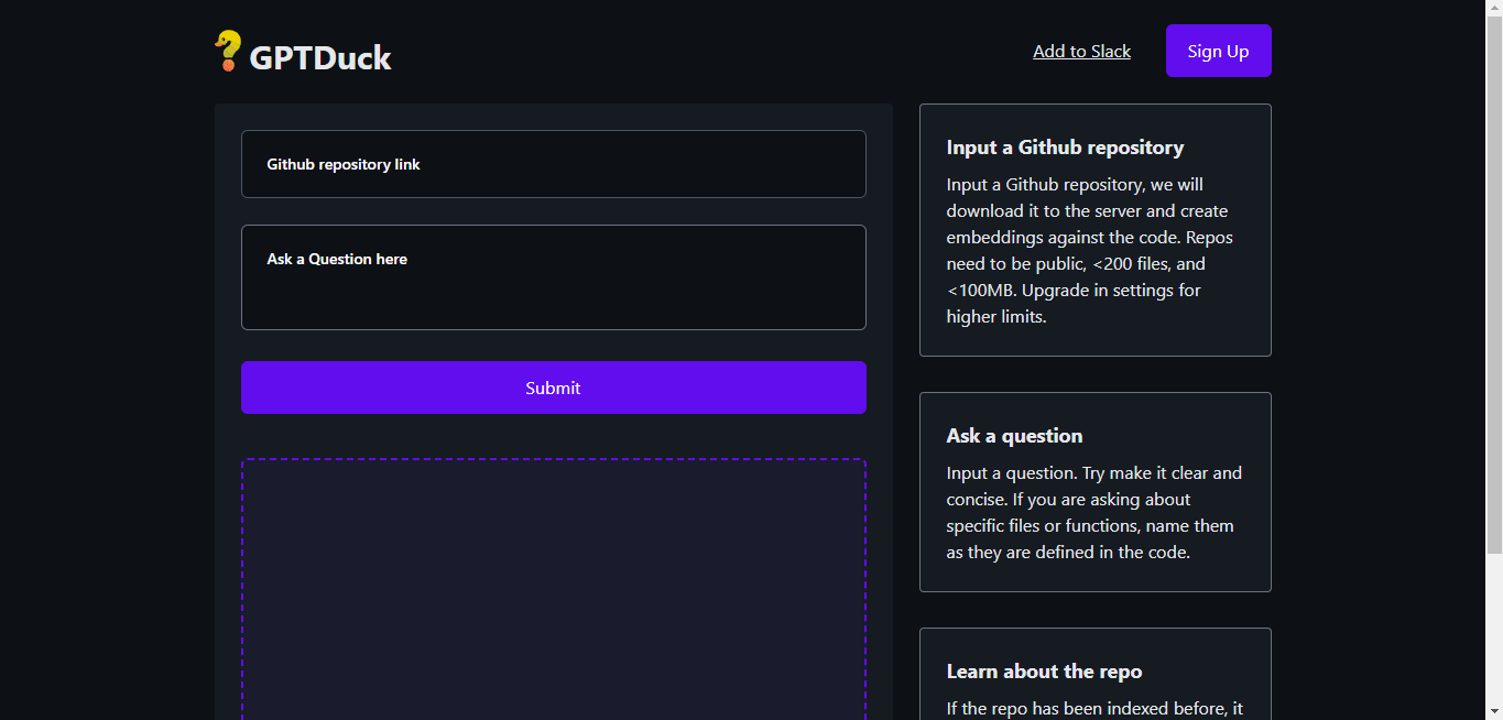 A GitHub repository can be researched using GPTDuck, a tool that answers questions.